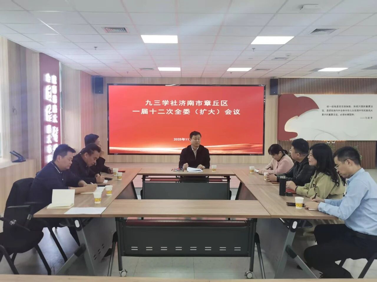 11月4日,九三学社章丘区委一届十二次全体(扩大)会议召开。会议由九三学社济南市委会副主委、九三学社章丘区委员会主委张健主持。