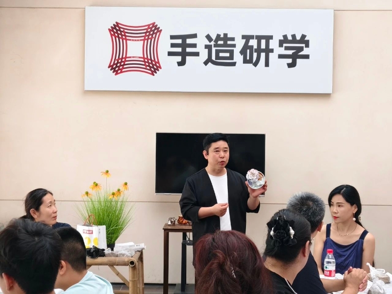此次活动特邀九三学社社员、手工陶瓷制作技艺非遗传承人滕毅授课。滕毅首先围绕手工陶瓷制作基础与陶瓷文化展开讲解,从泥料特性到成型技法,从陶瓷历史传承到现代创意应用,深入浅出的分享,让社员们对陶瓷非遗技艺有了系统认知,也激发了大家动手创作的热情。